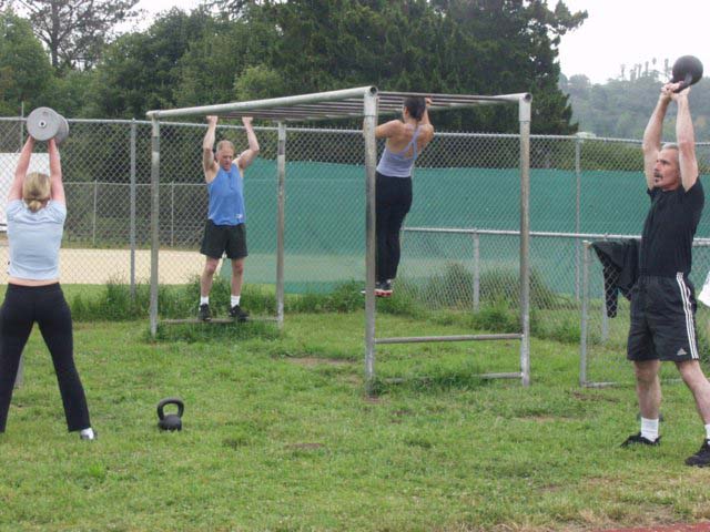 Our CrossFit North brothers, Dave Warner and Nick Nibler made a pilgrimage to Santa Cruz and we rehearsed what is to become “The CrossFit Challenge” – three rounds of 400 meter run, 1.5 pood Kettlebell or 50 pound dumbbell swing 21 reps, and 12 pull-ups.