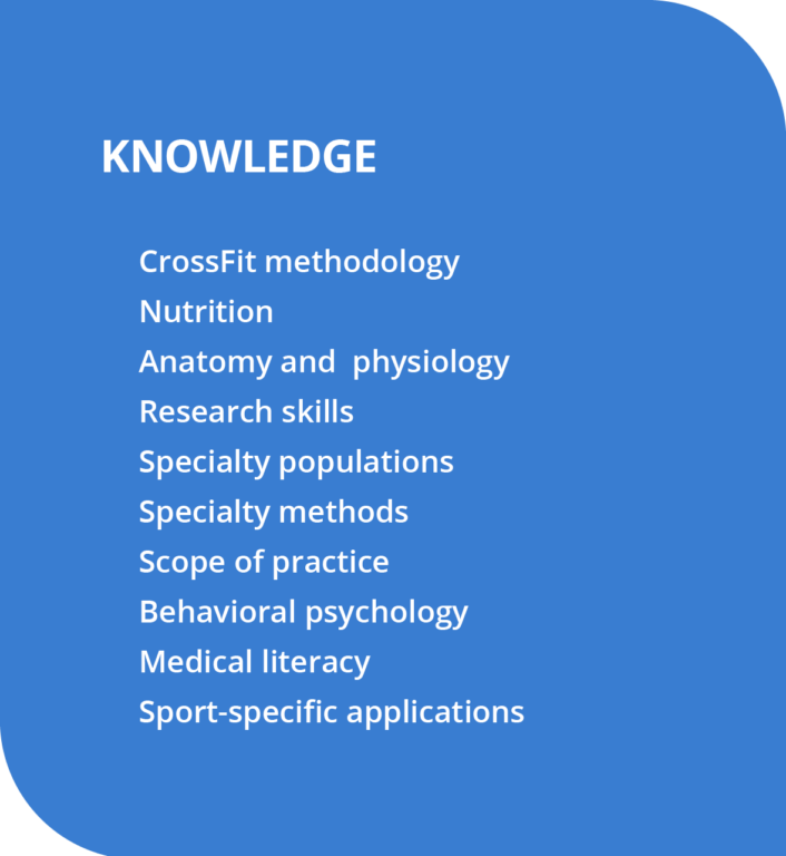 For the beginner CrossFit coach, the knowledge journey should start with the CrossFit Level 1 Course. This course provides a broad introduction to the essential concepts required to teach CrossFit, but knowledge acquisition should not stop there. The more expansive the coach’s understanding of strength and conditioning in general and the human body specifically, the more effective they will be at coaching and the more readily they will be able to bring the Level 1 content to life.